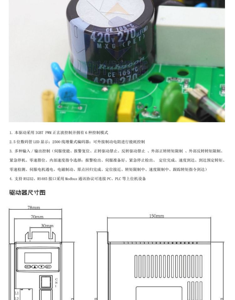 電機(jī)選用高工作溫度、高磁能積優(yōu)質(zhì)永磁材料;采用有限元法優(yōu)化電磁參數(shù)設(shè)計(jì);采用正弦波電流驅(qū)動(dòng),運(yùn)行特性良好;電機(jī)慣量適中,滿足各種場(chǎng)合使用。軸長(zhǎng)、軸徑、出軸處理方式等可根據(jù)客戶定制。被廣泛應(yīng)用在是火花機(jī)、機(jī)械手、精確的機(jī)器等。能加配減速箱、令機(jī)械設(shè)備帶來可靠的準(zhǔn)確性及高扭力。 調(diào)速性好,單位重量和體積下,輸出功率****,更遠(yuǎn)遠(yuǎn)超過步進(jìn)電機(jī)。多級(jí)結(jié)構(gòu)的力矩波動(dòng)小 配套的DM系列高性能伺服電機(jī)驅(qū)動(dòng)器DM-08EB采用雙成PCB制版性能更穩(wěn)定,數(shù)碼管實(shí)時(shí)顯示轉(zhuǎn)速,按鍵可隨時(shí)更改驅(qū)動(dòng)參數(shù);電路板表面噴涂厚層三防漆,防塵、防潮、防靜電,抵制惡劣環(huán)境,驅(qū)動(dòng)器內(nèi)部采用進(jìn)口TI芯片、原裝井口紅寶石電解電容電源濾波、美國(guó)仙童原裝大功率IPM模塊。****高品質(zhì)保證。可應(yīng)用在是火花機(jī)、機(jī)械手、精確的機(jī)器等。能加配減速箱、令機(jī)械設(shè)備帶來可靠的準(zhǔn)確性及高扭力。 調(diào)速性好,單位重量和體積下,輸出功率****,更遠(yuǎn)遠(yuǎn)超過步進(jìn)電機(jī)。多級(jí)結(jié)構(gòu)的力矩波動(dòng)小。