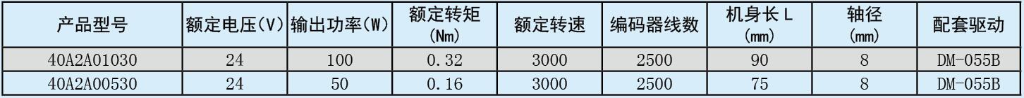 | 類別 | 新型號 | 參數 | 驅動器配 | | 40系列 | 40AEA01030-SC3 | 0.32NM 100W 3000轉 | DM-04EA | | 60系列(220V) | 60AEA02030-SC3 | 0.637NM 200W 3000轉 | DM-04EA | | 60AEA04030-SC3 | 1.27NM 400W 3000轉 | DM-08EB | | 60AEA06030-SC3 | 1.91NM 600W 3000轉 | DM-08EB | 80系列(220V)