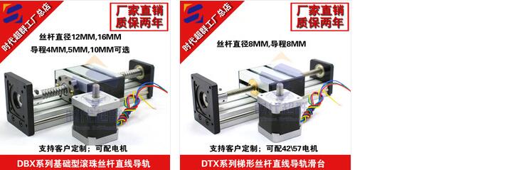 導(dǎo)軌滑臺(tái)模組一直以來(lái)都為自動(dòng)化發(fā)展帶來(lái)了巨大的機(jī)遇,選用高質(zhì)量的滑臺(tái)可以做到事半功倍的效果。時(shí)代超群導(dǎo)軌系列(點(diǎn)擊鏈接查看詳情):滑輪式滾珠滑臺(tái)DBX系列,滑輪式梯形滑臺(tái)DTX系列,線(xiàn)軌滾珠滑臺(tái)CBX系列,雙線(xiàn)軌滾珠滑臺(tái)HBX系列,光軸梯形絲杠滑臺(tái)ETX系列,光軸滾珠絲杠滑臺(tái)EBX系列,同步帶導(dǎo)軌滑臺(tái)系列。 【聯(lián)系方式:13811070445(微信在線(xiàn)) QQ:467102884 淘寶店鋪:時(shí)代超群工廠(chǎng)總店】 下面提供具體選型參數(shù)表